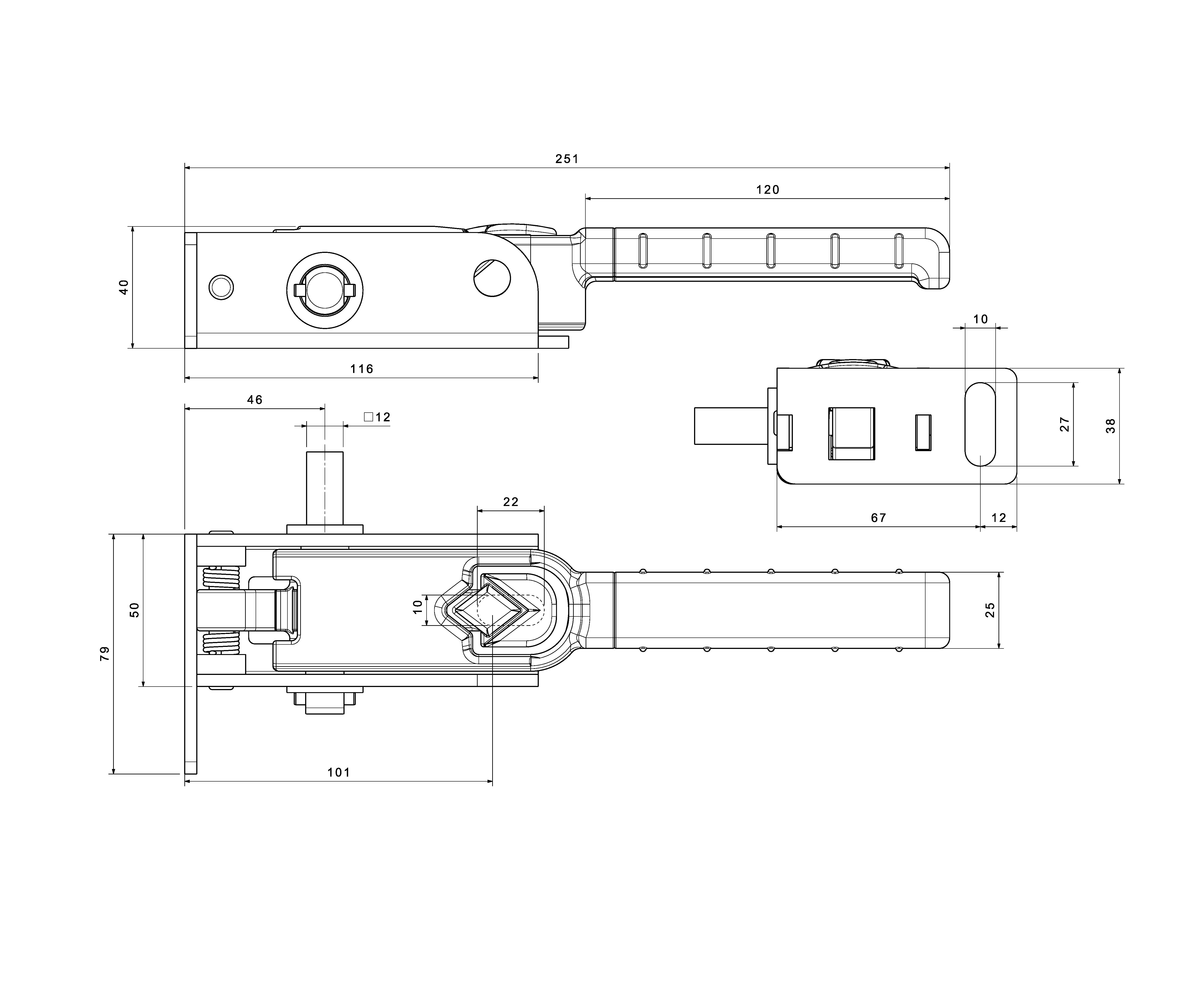 آلية شد المشمع الجديدة مع محول U & مربع، بذراع مستقيم، مجلفن بالغمس الساخن