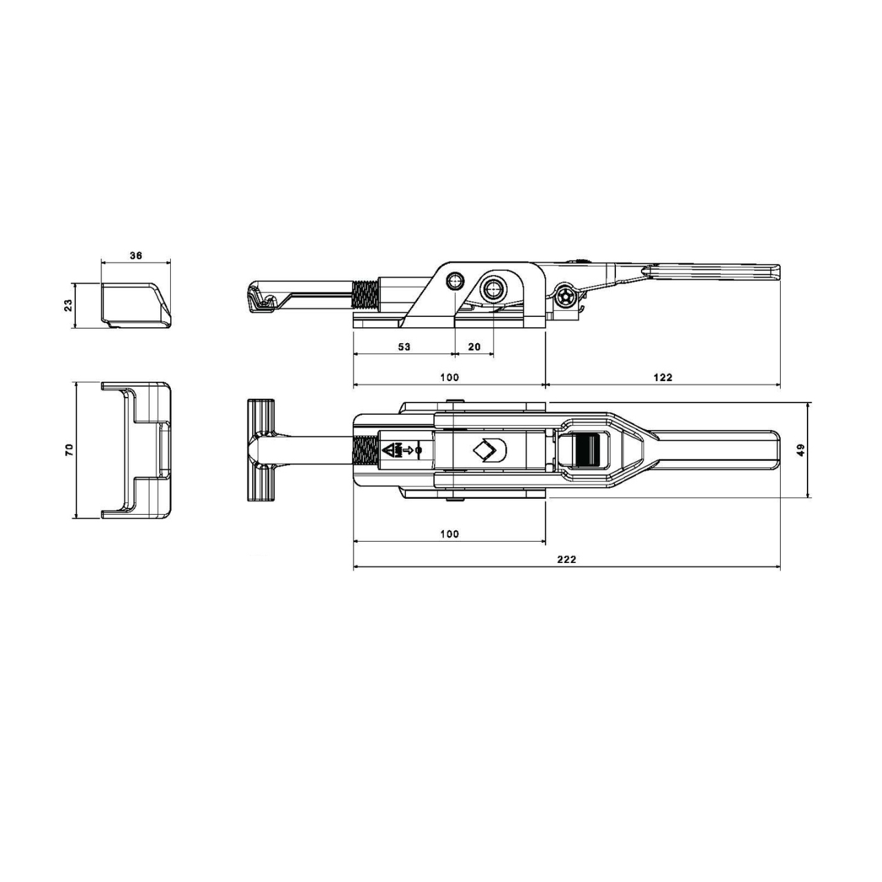 Эксцентриковый замок с приварной T-образной деталью и ответной планкой врезного замка 36 мм